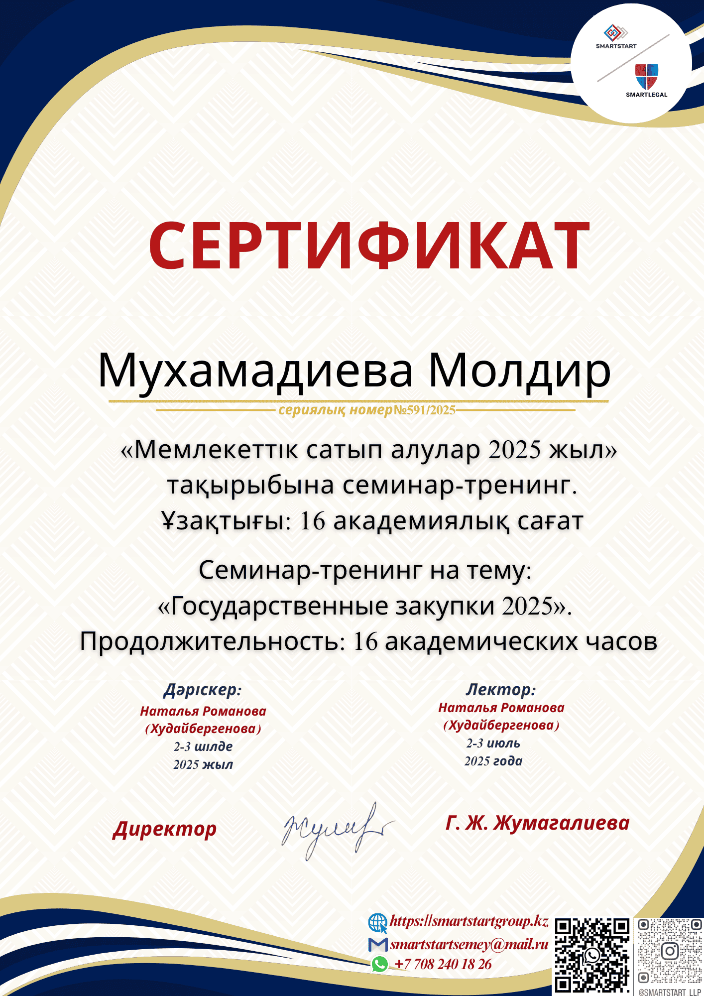 Мухамадиева Молдир Жаномировна