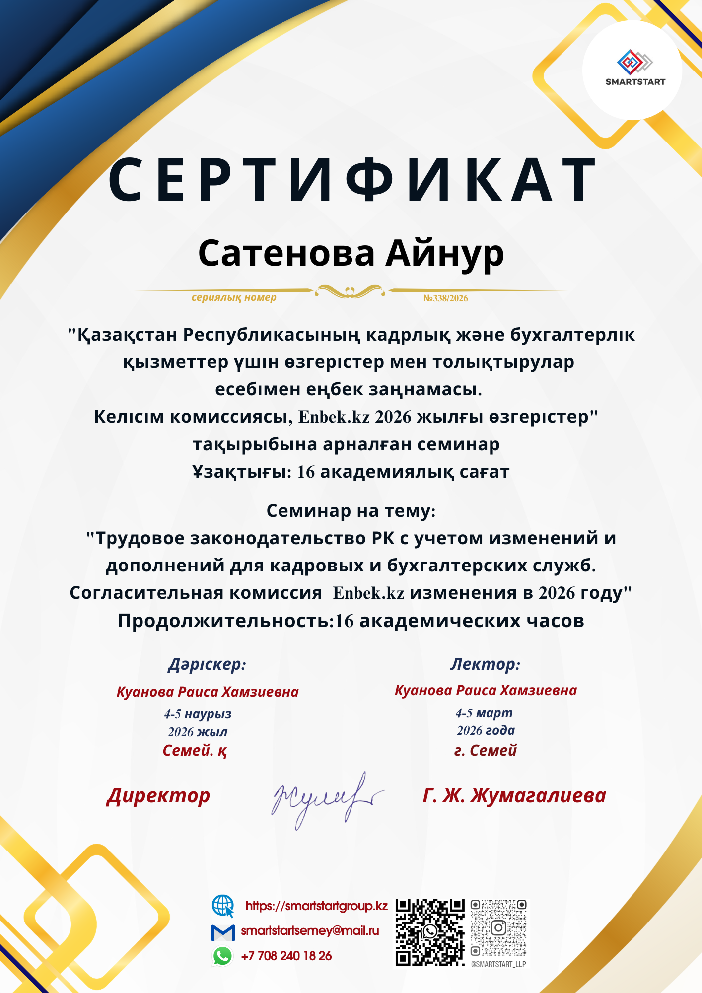 Сатенова Айнур Токтарбековна