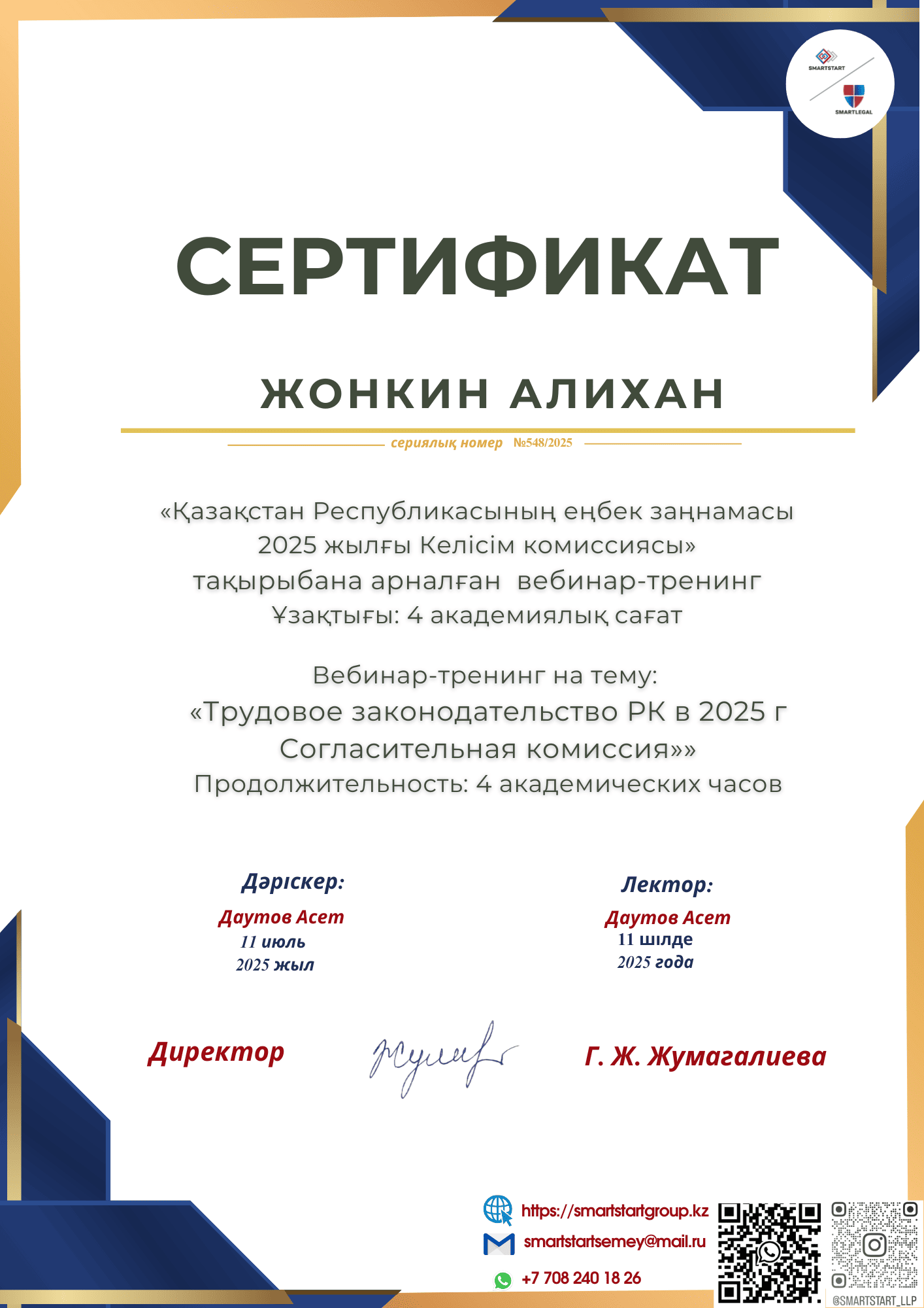 Жонкин Алихан Устараулы
